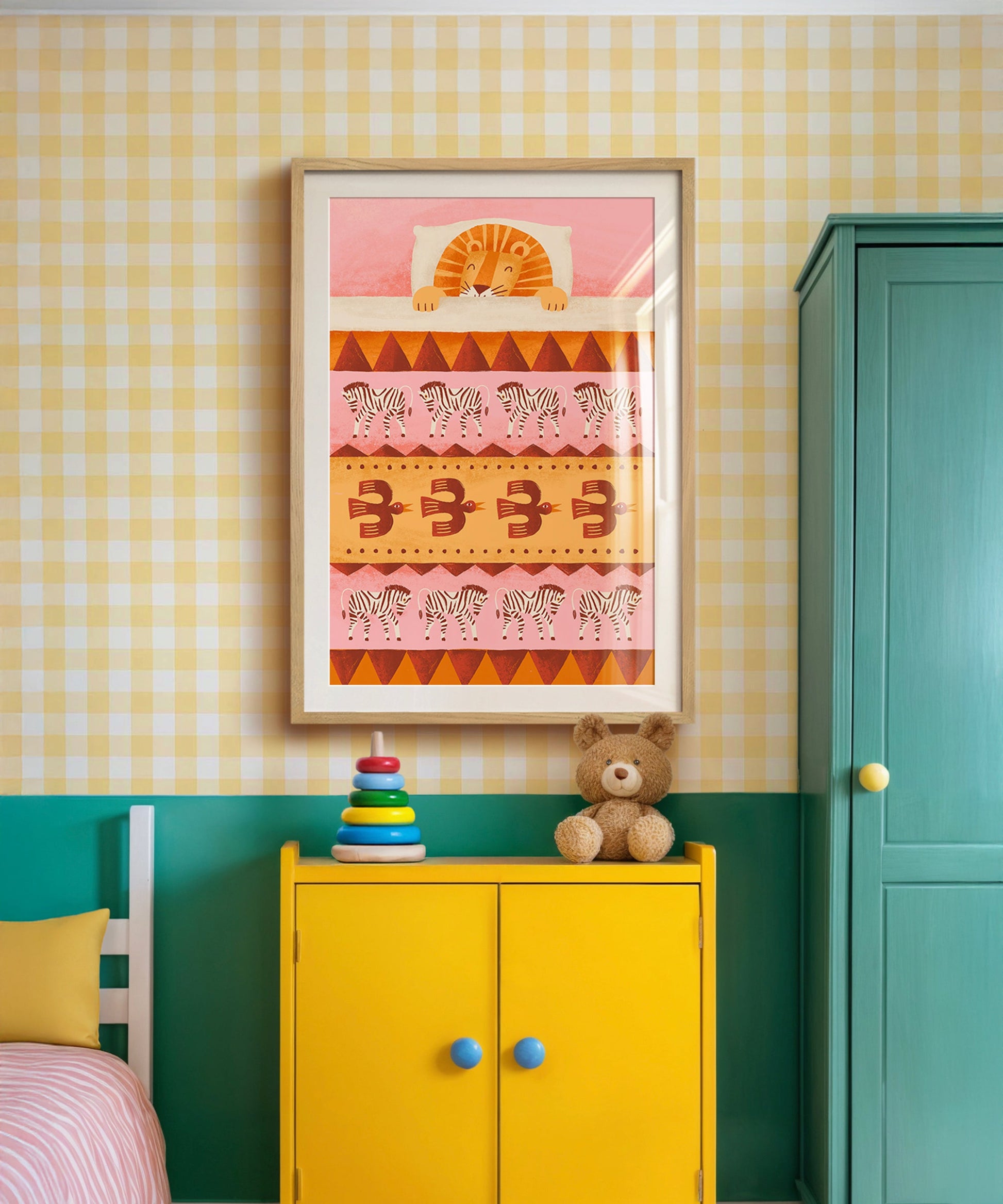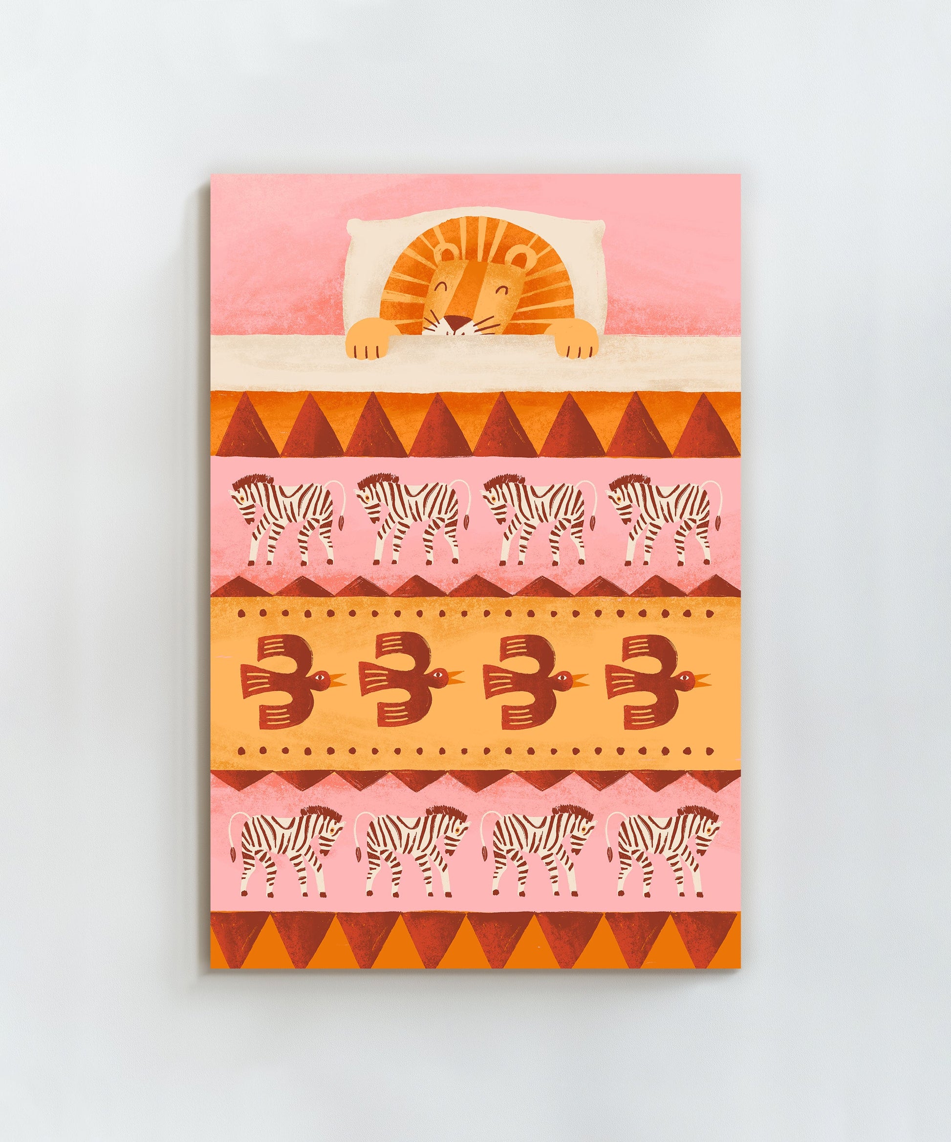 Join this little lion for a restful night's sleep where he can dream of one day being king of the jungle. One of four prints in our All Tucked In Collection, this series is designed to bring your little one sweet dreams of their own. Display this cozy cat alone or pair him with one of our other sleepy animals for a duo of prints guaranteed to inspire peaceful naps and soothing night sleeps.