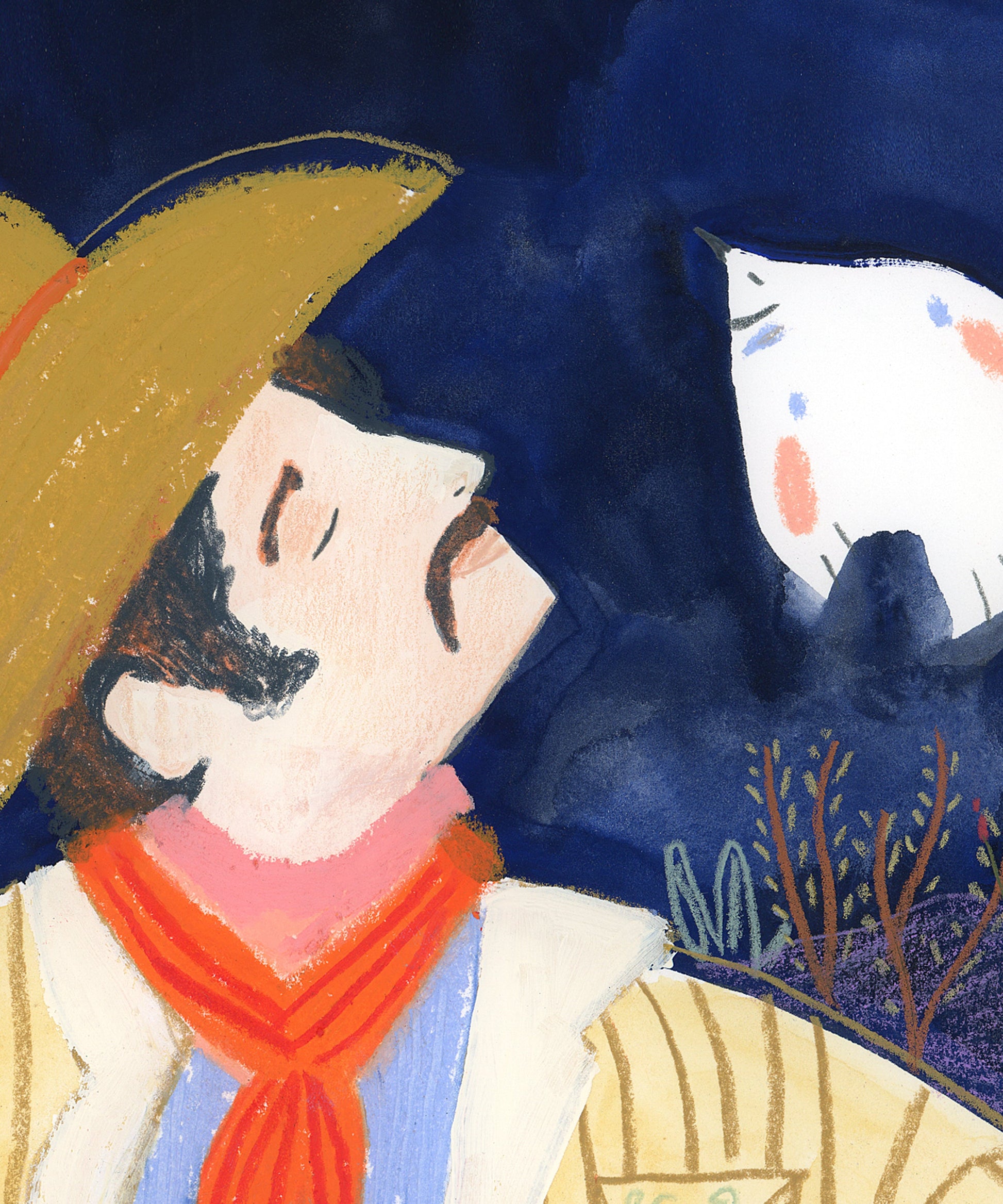 This print, entitled "Bird Dance Dream" is part of the colorful western collection by Melissa Lakey. This serene piece, featuring a cowboy surrounded by sparrows in the night, brings a peaceful presence to any nursery or little cowboy's room. Get it as a large solo piece, or pair it with the cowboy version "All She Dreamt Were Flowers" for the perfect duo.