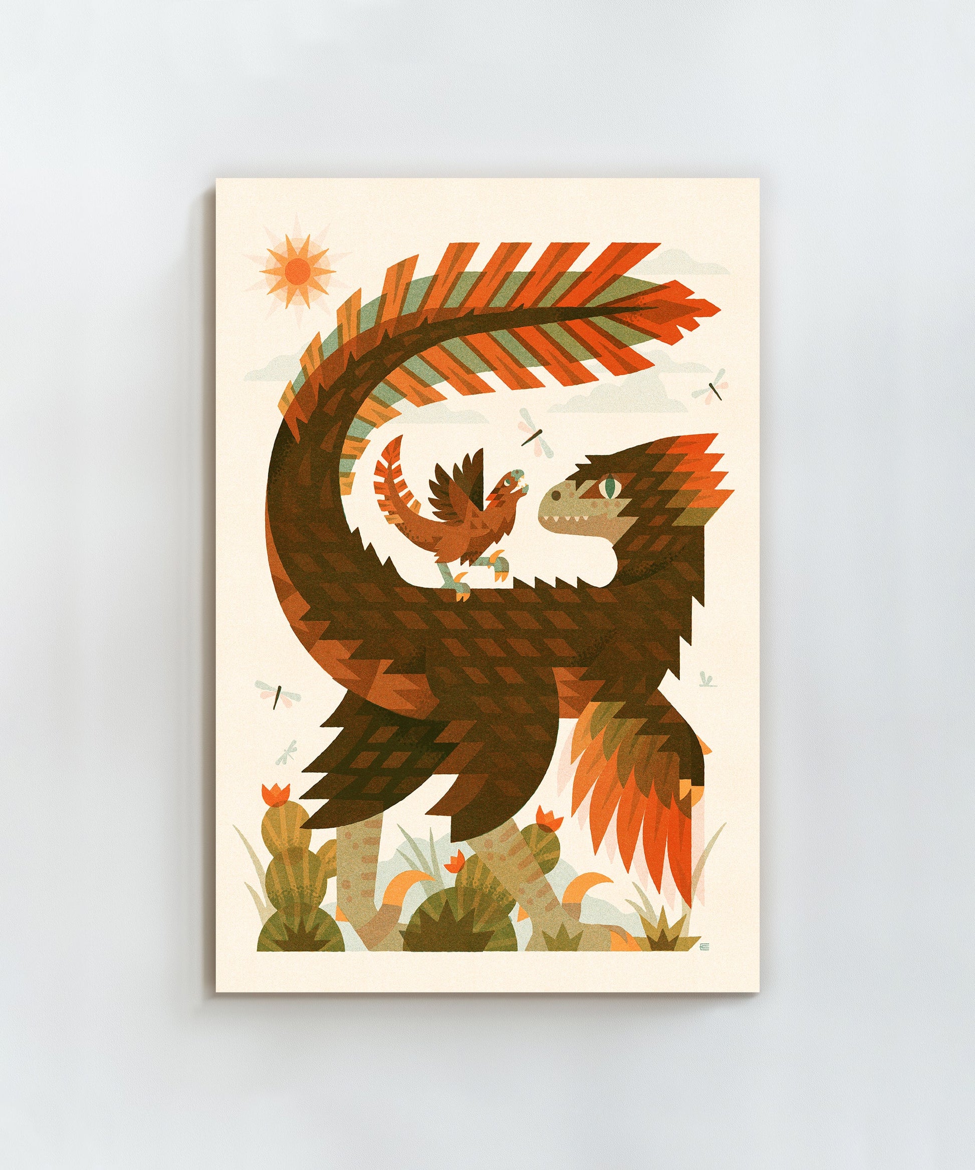 Part of our Little Dinos Collection, the details in this piece will amaze. Each design in this series was created by layering shapes and fine textures to mimic the risograph printing process, a digital screen-printing technique that gives every piece an authentic, hand-made feel.