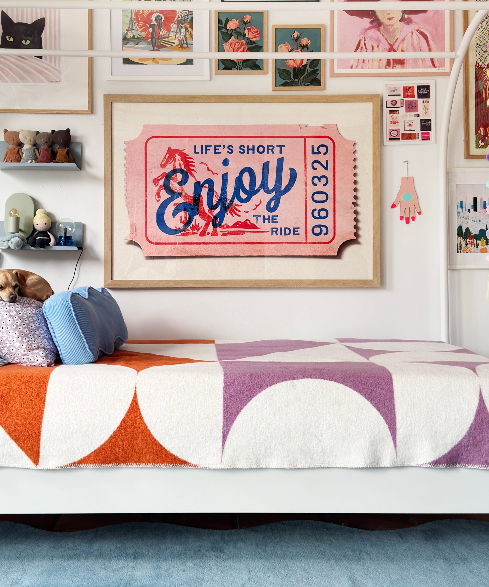 Step right up and get your ticket! This western version of our retro-inspired typography piece brings carnival charm to any nursery or playroom with its soft pink backdrop and bold blue lettering. A playful reminder for your little dreamer (and yourself) that every day is a ride worth celebrating.